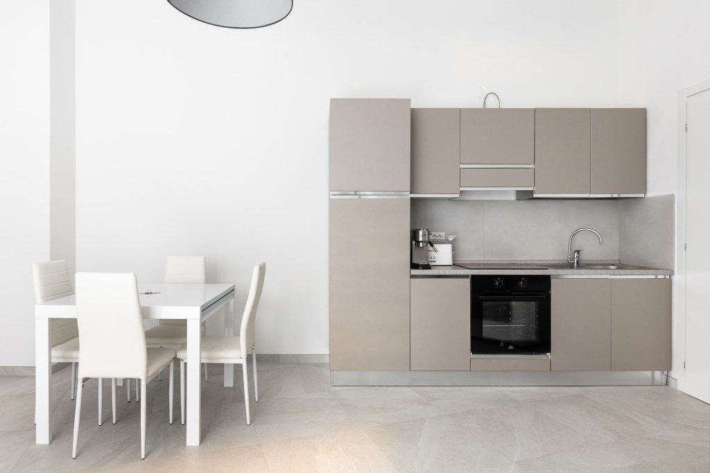 Dispone di camera da letto matrimoniale, soggiorno con cucina a vista e divano letto singolo e bagno con doccia.