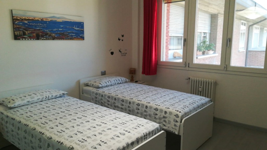 Nice apartment of about 65 square meters. on the ground floor, composed of living room with fully equipped kitchenette and dining area, double bedroom, single bedroom and bathroom with shower. The apartment is in a quiet area and convenient to services: 5 minutes walk from the bus stop to the center, 10 minutes walk from a supermarket Esselunga and less than 10 minutes by bus from the Ospedale Maggiore. It takes about 30 minutes by bus to reach the city center by bus.