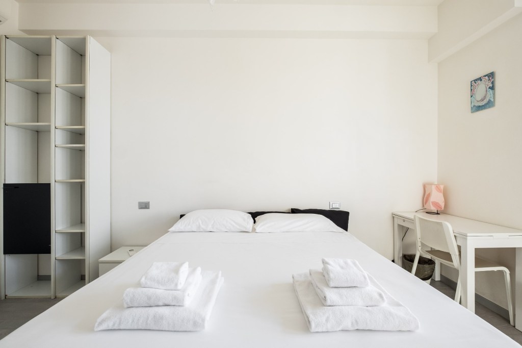 Spacious and bright apartment on the fifth floor with elevator. The apartment is composed as follows: room with double bed divisible in two single beds, balcony and air conditioning;