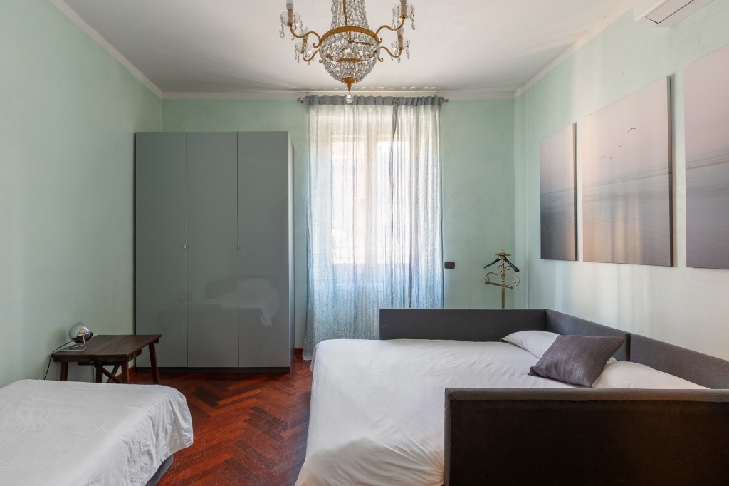 Delightful apartment of about 60 square meters located on the second floor with elevator, completely renovated, consisting of: kitchen with balcony, a double bedroom and a single bedroom, hallway, bathroom with window and walk-in shower. Three beds, two in the double room and one in the single room.