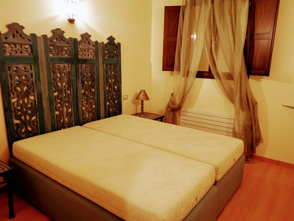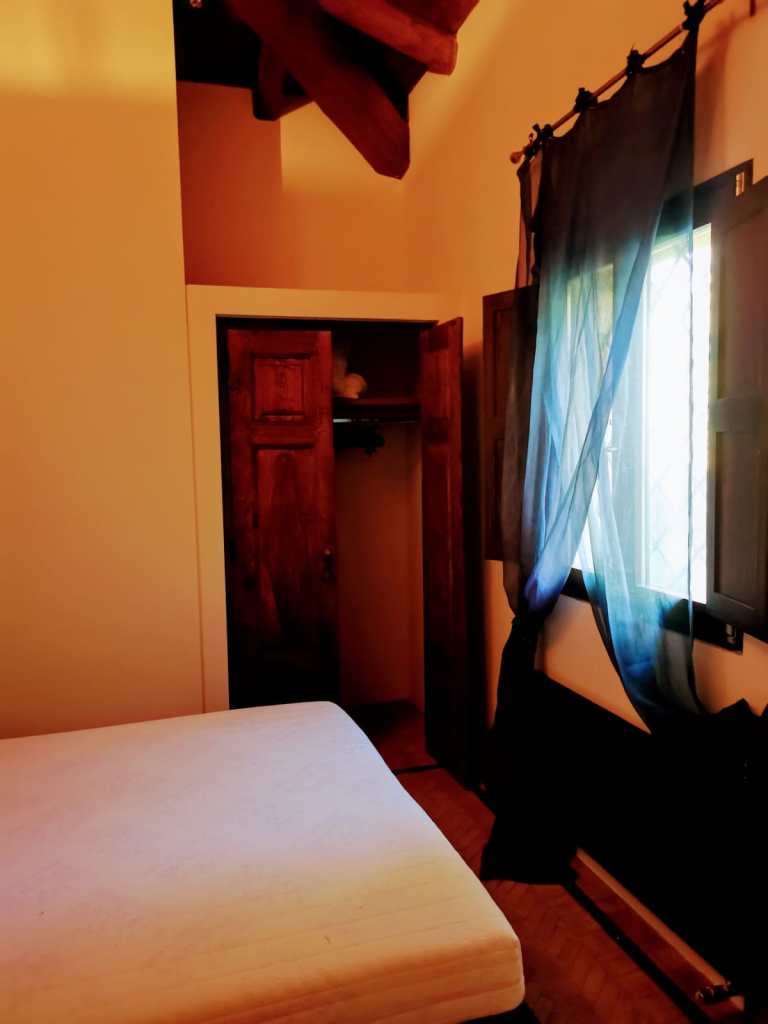 room with double bed WITHOUT air conditioning; large kitchen with dining area, sofa and air conditioning; bathroom with bathtub and shower; Large storage room.