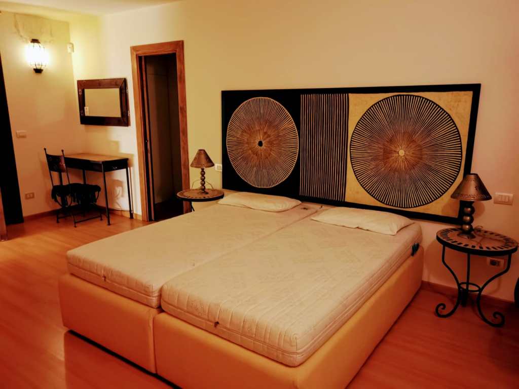 Elegant, modern and spacious apartment of about 140 sqm located on the ground floor that has: kitchen, living room, two bedrooms with double bed, a bedroom with divisible double bed and single bed, a sofa bed and two single beds in the living room, a bathroom with shower and a bathroom with bath and shower.