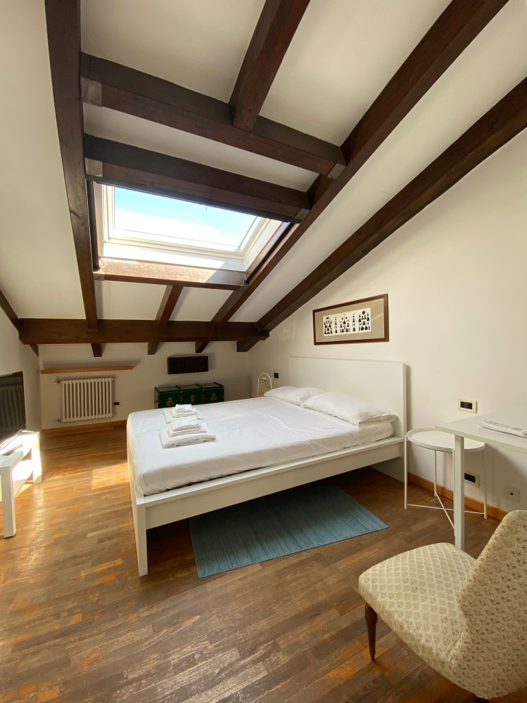 The apartment is in the heart of Bologna’s historic center, convenient to public services and transportation and close to the university area.